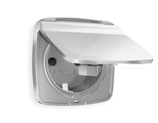 OP4080 Лицевая панель OMEGA (Серебро глянец) для электрической розетки с/з со шторками и крышкой IP44 QUANT, AMBRELLA VOLT, OP4080