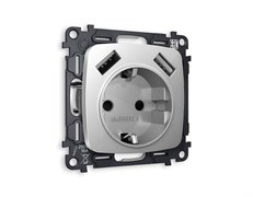 Сталь SO + USB Розетка A+A, 5В/2,4 А, 2х5В/1,2 А, механизм Systeme Electric AtlasDesign ATN000930