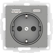 Сталь USB Розетка A + тип-C 45W высокоскор.заряд. QC, PD, мех. Systeme Electric AtlasDesign ATN000929