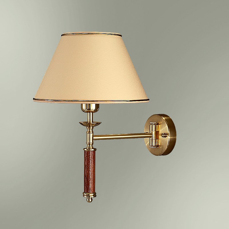 Настенный светильник предназначен для местного освещения в залах, кабинетах, спальнях, но часто он играет роль основного источника света,например, в прихожей или в коридоре.В данной модели кронштейн бра, на котором крепится абажур,подвижный ,что позволяет горизонтально перемещать источник света на 120 градусов. Бра укомплектовано шнуром с вилкой и выключателем.