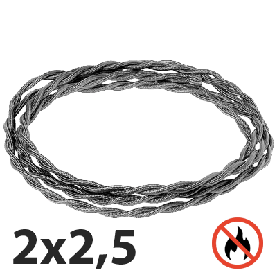 Электрический витой ретро провод 2х2,5 ПВОНГ Бухта 20/50м. Графит Salvador GRF/P-2х2,5.