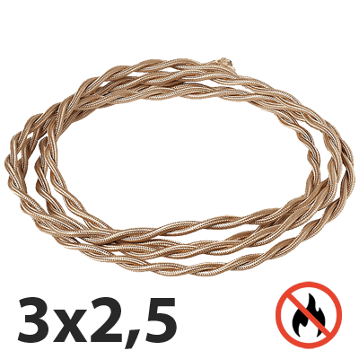 Электрический витой ретро провод 3х2,5 ПВОНГ Бухта 20/50м. Карамель Salvador CAR/P-325
