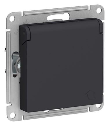 Механизм Systeme Electric (ранее Schneider Electric) серии AtlasDesign в цвете карбон розетки одинарной с заземлением, шторками и крышкой подходит для сетей 250 В, на ток 16 А.