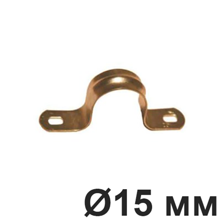 Крепеж для труб двухсторонний, металический, медное покрытие. Используется для труб диамметром 15, 18 и 22 мм. Необходимый размер выбирайте при заказе.