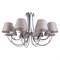 Классическая потолочная люстра в нетленном сочетании серого цвета абажуров и хромированной арматуры украсит интерьер как спальной комнаты так и гостиной. 8 ламп способны осветить помещение до 30 кв.м. Применение диммеров позволит дозировать свет для всех случаев.