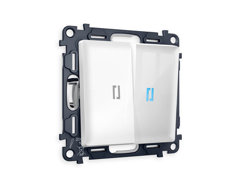 MA104040 Комплект механизма 2-кл проходного выключателя с подсветкой 10000K ALFA Белый глянец QUANT (AP1040, VM120, G29B), AMBRELLA VOLT, MA104040