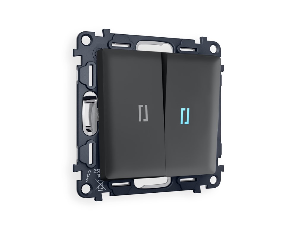 MA904020 Комплект механизма 2-кл выключателя с подсветкой 10000K ALFA Графит мягкое касание QUANT (AP9040, VM115, G17B), AMBRELLA VOLT, MA904020