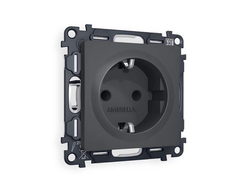 MA907010 Комплект механизма электрической розетки ALFA Графит мягкое касание с/з с шторками QUANT (AP9070, VM141), AMBRELLA VOLT, MA907010