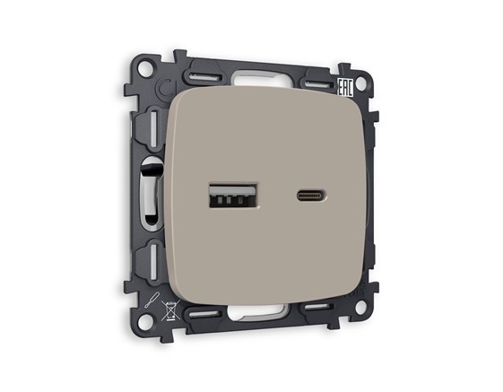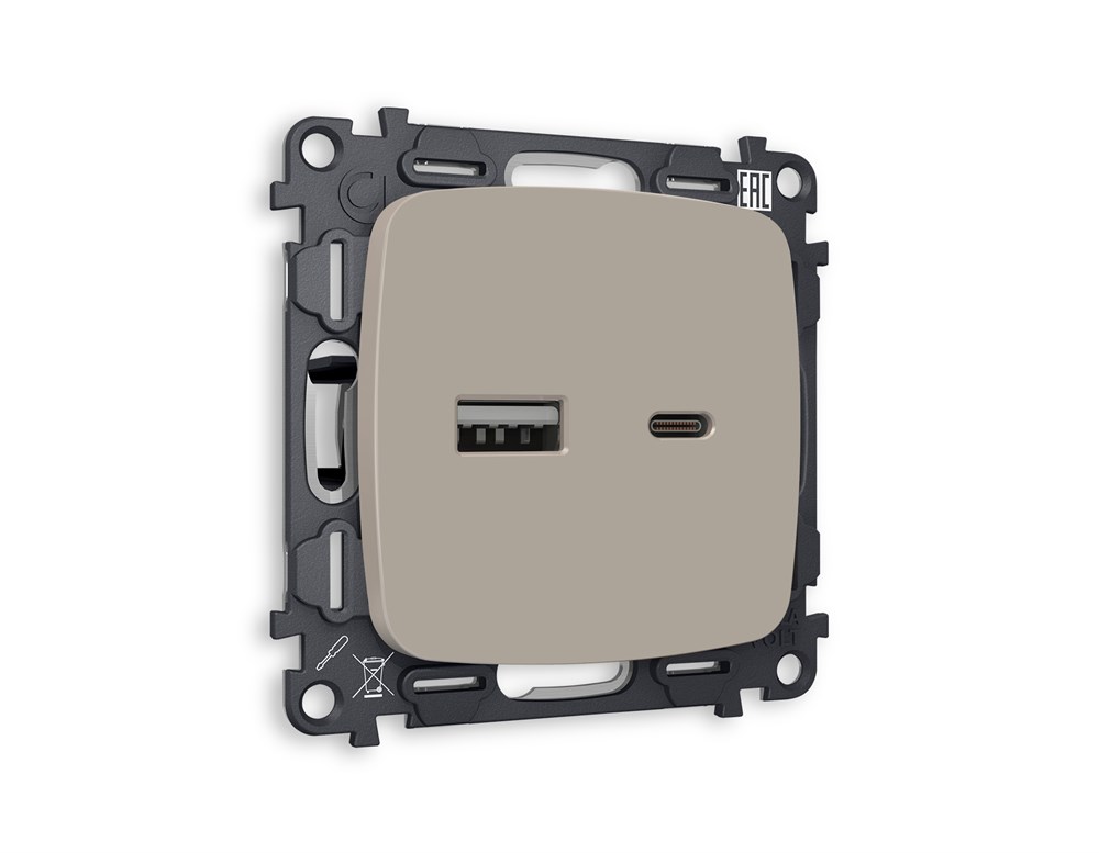MO371010 Комплект механизма розетки OMEGA Серо-бежевый матовый 2USB A+C 20W (быстрая зарядка) QUANT (OP3710, VM177), AMBRELLA VOLT, MO371010