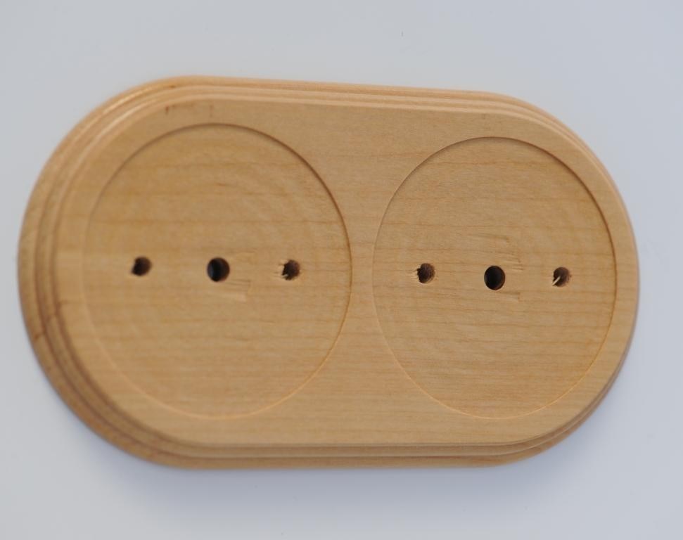Деревянная подложка 2х-местная под розетки и выключатели ретро. Изготовлена из массива березы. Была разработана под электрику компании "Мезонин" , но может использоваться и для изделий других брендов.