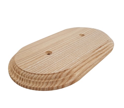 Рамка (подложка, подрозетник) овальная изготовлена из ясеня, с фигурными краями, предназначена для установки на нее керамических ретро розеток и ретро выключателей торговой марки LEANZA в количестве двух изделий. Рамка имеет ровную поверхность, что позволяет устанавливать ее на ровную несущую поверхность помещения (стена, потолок). Общий размер изделия — 110х190 мм, параметры лицевой части (посадочного места под ретро розетки или ретро выключатели) — 88х168 мм.