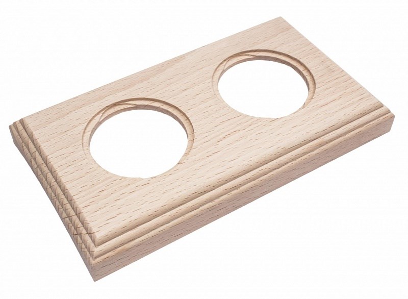 Рамка на бревно 2х-местная цвет "натурель" коллекция "Шедель" Bironi, для скрытого монтажа механизмов розеток и выключателей на поверхность бревна/блокхауса.