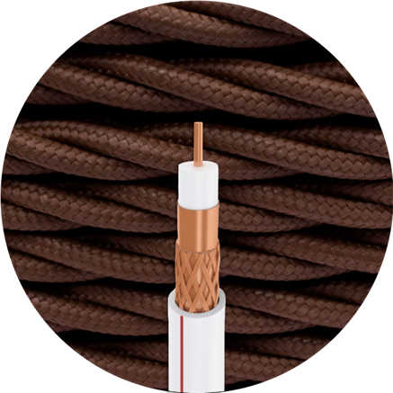 Ретро кабель коаксиальный, Коричневый, Bironi B1-426-72-20. Состоит из двух отдельных коаксиальных кабелей в декоративной оплетке, сплетенных между собой.
