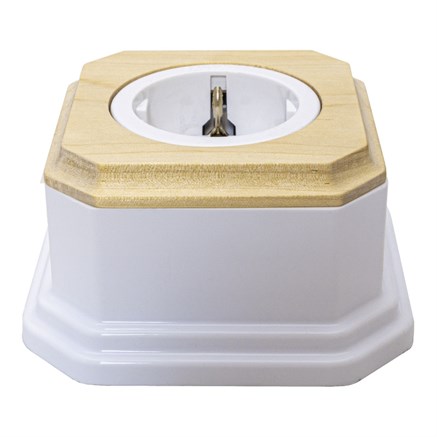 Розетка в ретро стиле из АБС-пластика и дубовой рамки, с заземляющим контактом.