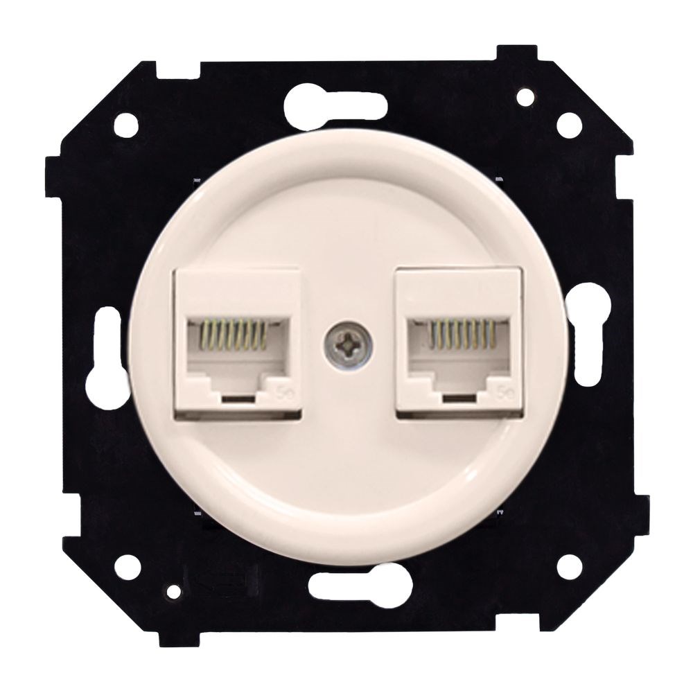 Розетка двойная компьютерная механизм + накладка, цвет Песочное золото матовый (скрытый монтаж), Bironi, Шедель "Бриз", B3-302-24M