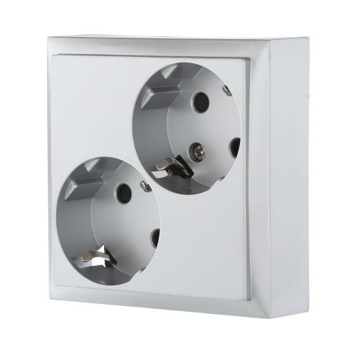 Розетка двойная Серебро с з/к с защитными шторками LK60 LK STUDIO 863503