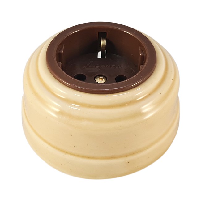 Изготавливаются под заказ 5-10 дней. Розетка электрическая ретро с фарфоровым (керамическим) корпусом Leanza серия Весна цвет коричневый. Розетка адаптирована под вход электрических вилок евростандарта. Дно розетки выполнено из термостойкого ABS пластика, который создает огнеупорную защиту между механизмом розетки и несущей поверхностью (стеной).