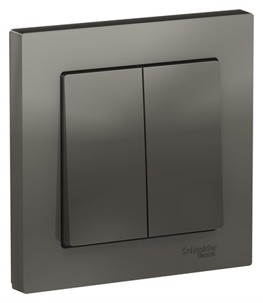 Выключатель Systeme Electric (ранее Schneider Electric) серии AtlasDesign (в сборе, цвет сталь) 2-клавишный подходит для сетей 250 В, на ток 10 А.