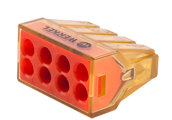 Клемма соединительная 8-проводная. Сечение подключаемых проводов 0,75-2,5 мм.