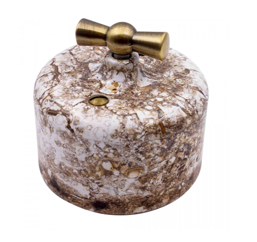 Выключатель ретро керамический, Мрамор Ришелье Bironi R1-2**-09