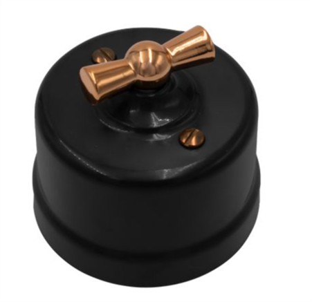 Выключатель ретро пластиковый, Черный, ручка цвет Медь Bironi B1-200-23-С
