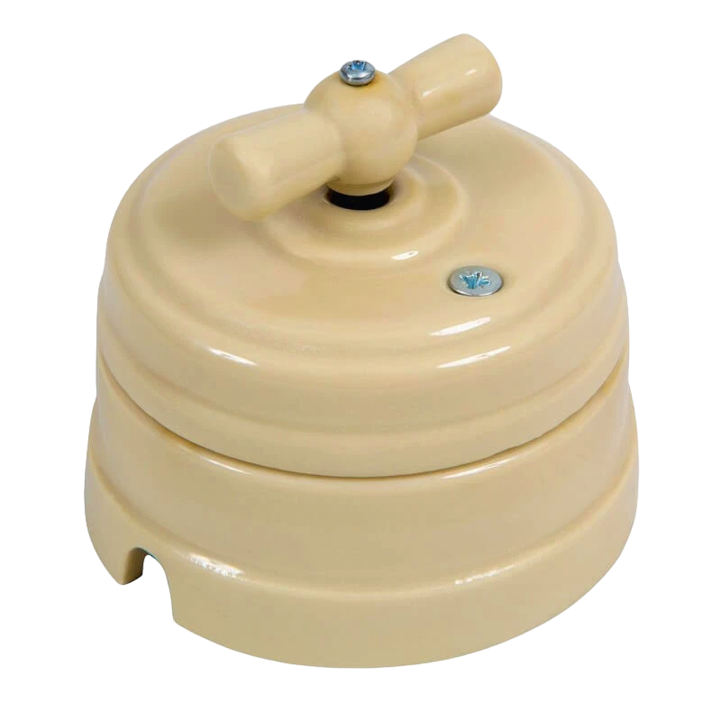 Фарфоровый переключатель для скрытой и открытой ретро проводки Мезонин. Характеристики: 10А/250В~, IP20, D70х60мм.
