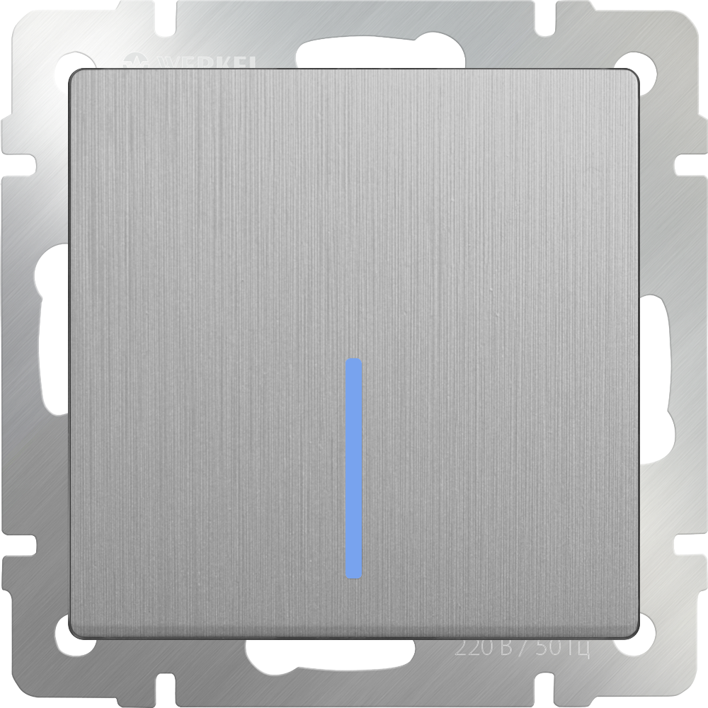 Выключатель одноклавишный с подсветкой (cеребряный рифленый) W1110109